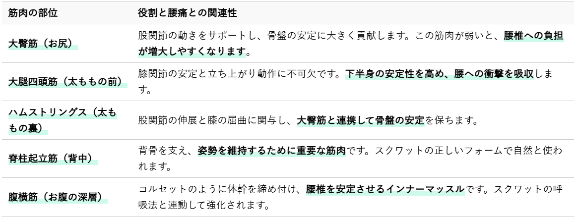 2.1 腰痛の主な原因とスクワットで鍛えるべき筋肉