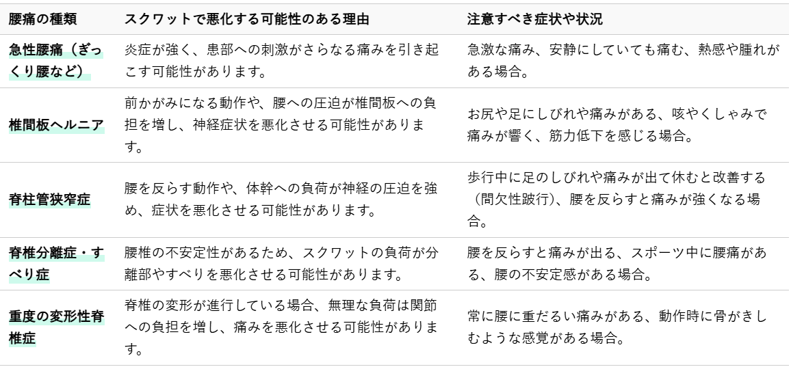 6.1 スクワットが逆効果になる可能性のある腰痛の種類