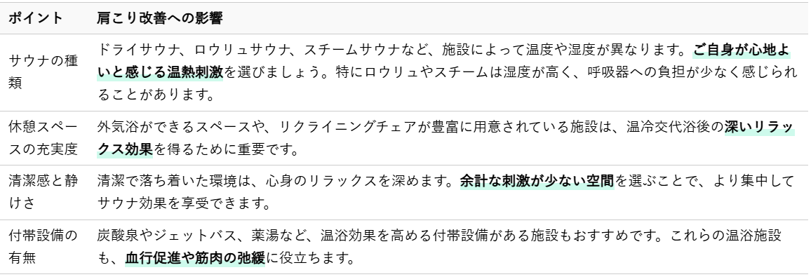 2.2.2 肩こり改善におすすめのサウナ施設選び
