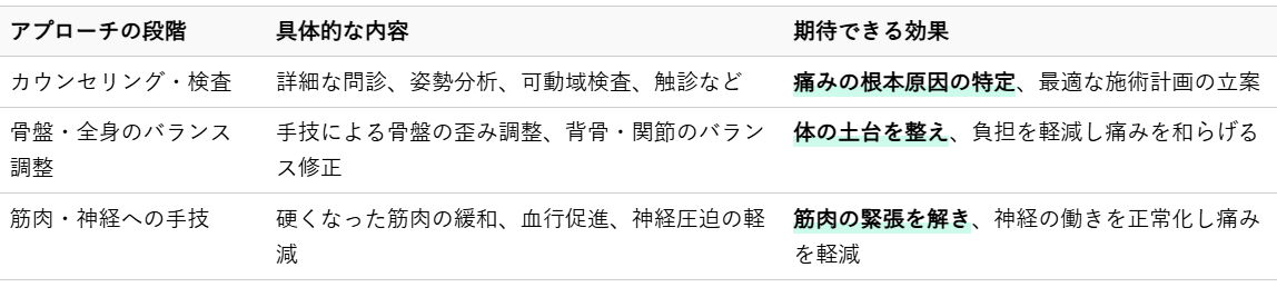 2.2 骨盤矯正と全身のバランス調整で痛みを和らげる