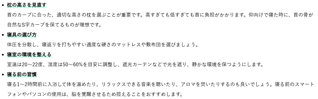 快適な睡眠環境を整えることで、身体がリラックスし、回復力が高まります。
