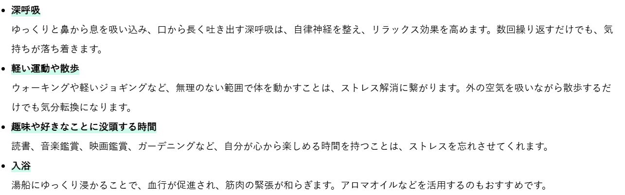 ストレスは、無意識のうちに首や肩の筋肉を硬直させます。自分に合ったリフレッシュ法を見つけ、心身の緊張を和らげましょう。
