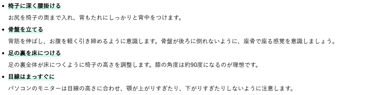 長時間座る機会が多い方は、特に座り姿勢に注意が必要です。