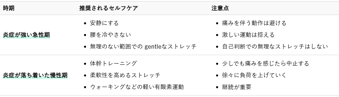 4. 整体と並行して行うべき炎症性腰痛のセルフケア