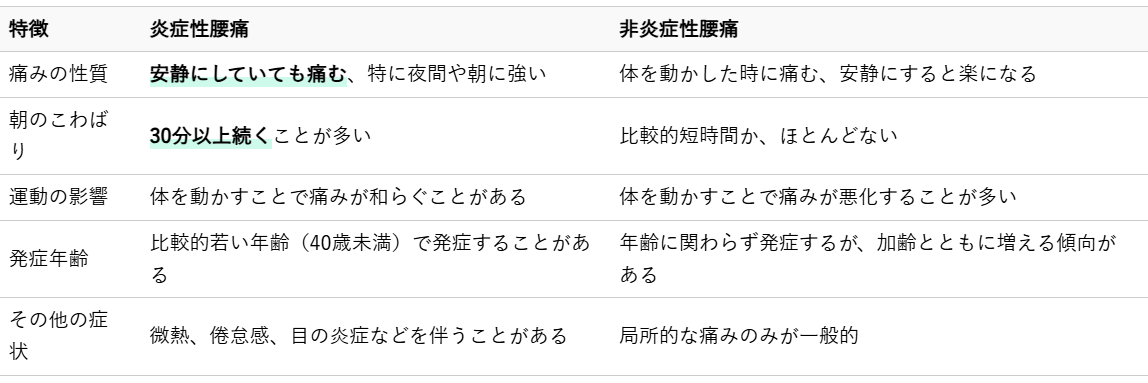 1.2 炎症性腰痛と非炎症性腰痛の違い