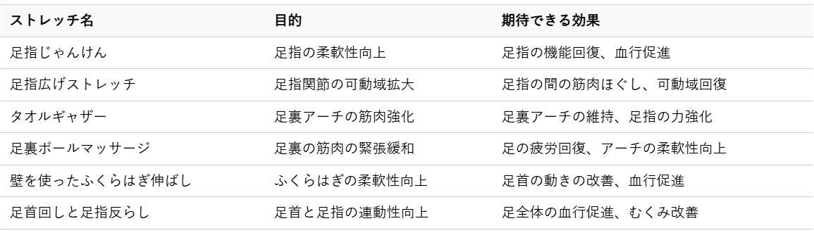 外反母趾のつらい症状を和らげ、改善へと導くためには、日々の継続的なケアが重要です。ここでは、自宅で手軽に実践できる、たった5分で完了する効果的なストレッチをご紹介します。足指や足裏、ふくらはぎの筋肉にアプローチすることで、足全体のバランスを整え、外反母趾の進行を食い止めましょう。